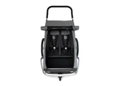 Kinderfahrradanhänger mit 2 Sitzplätzen. 2in1: inkl. Fahrrad- & Buggy-Set. Mit Croozer AirPad® Federung. Farbe: Mountain grey.